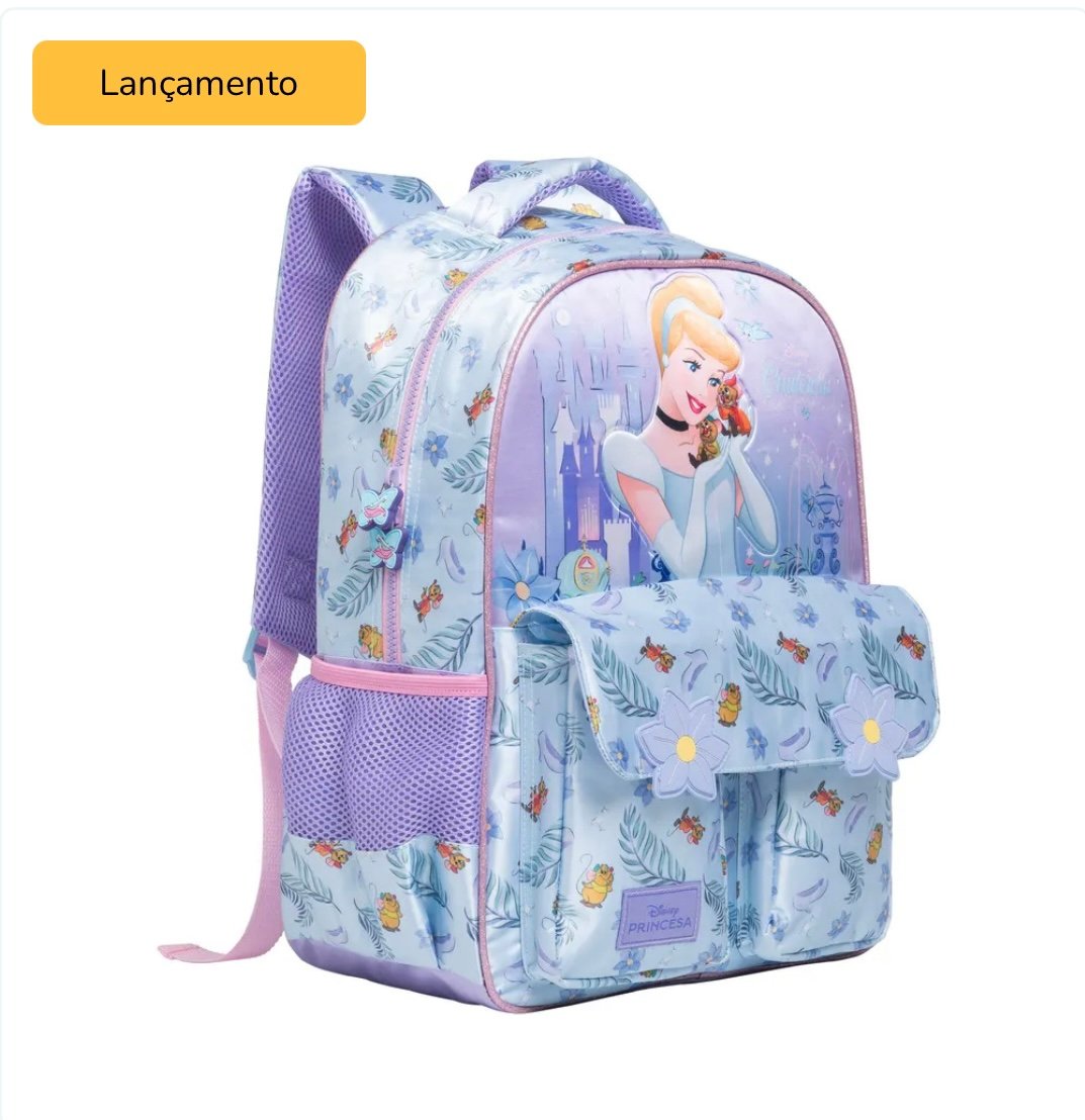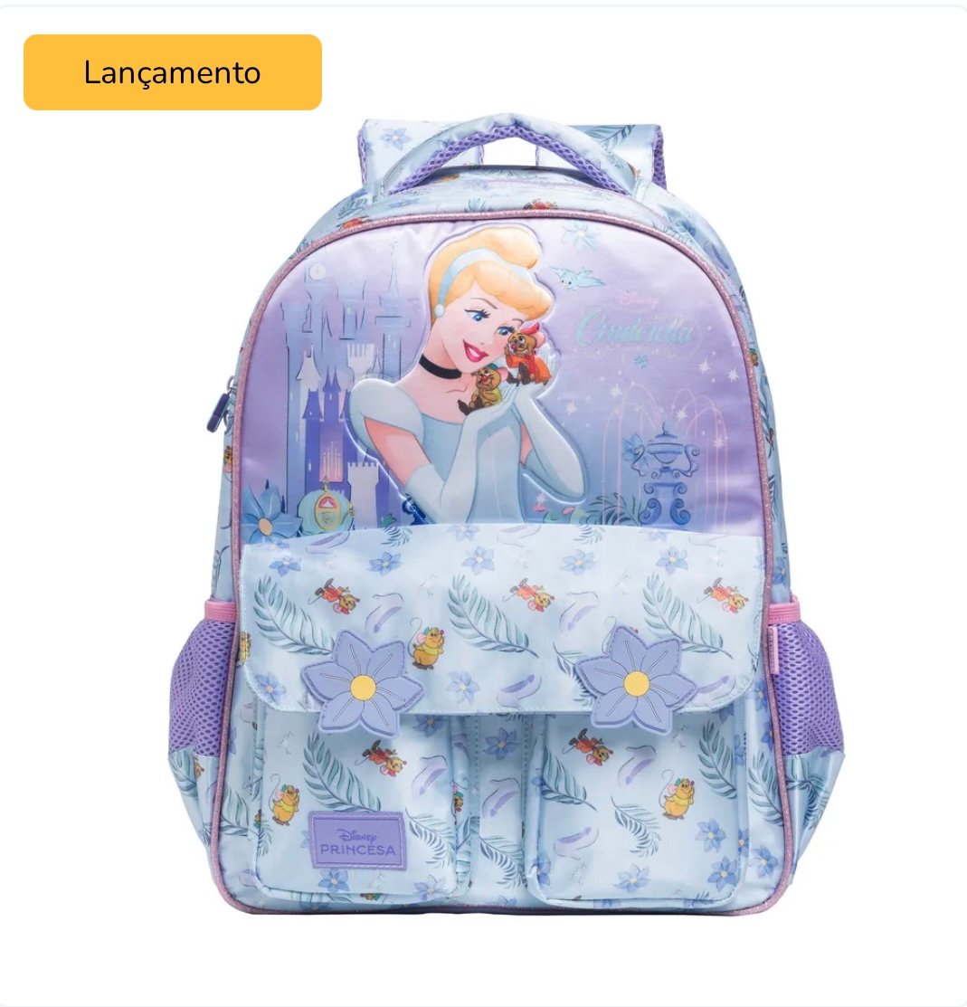 Transforme a rotina escolar em um verdadeiro conto de fadas com a Mochila da Cinderella! Inspirada na princesa que sonha com um mundo melhor, essa mochila traz funcionalidade, charme e muito brilho para o dia a dia das pequenas.
