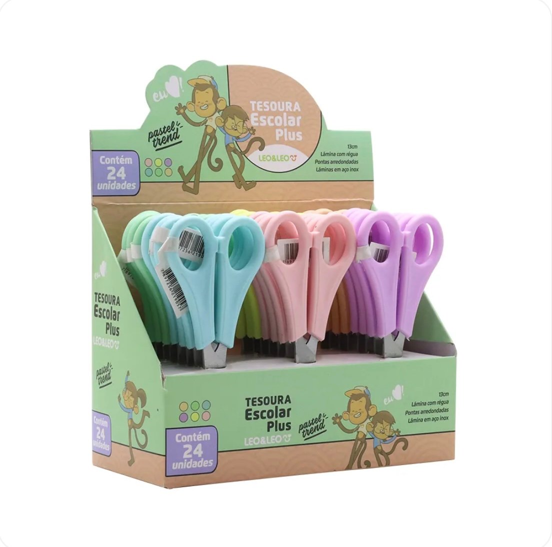 Além disso a Tesoura Escolar Plus Pastel Trend tem a ponta arredondada.